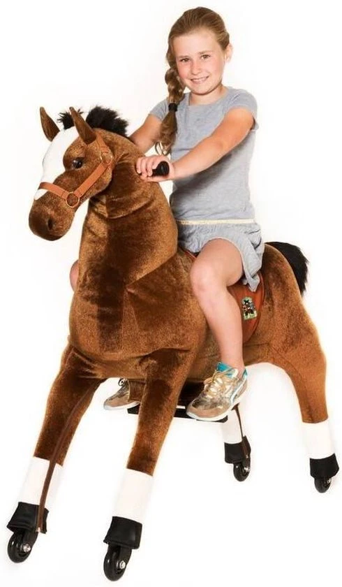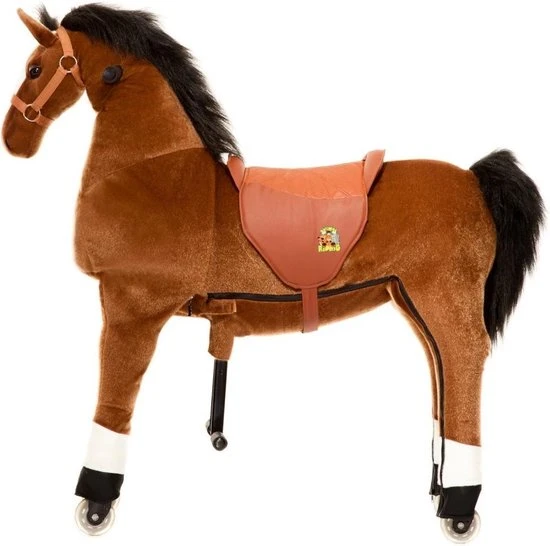 Het bruine paard Amadeus in de maat X-Large is net zo groot als een echt paardje. Je kunt op het zadel zitten en als je gaat bewegen gaat het paard vooruit. Ook kun je het paard naar rechts en naar links sturen. Het pedaal is verstelbaar in 3 standen. Het zadel is afneembaar wat het speelplezier verhoogd. Ervaar het zelf en bestel snel!