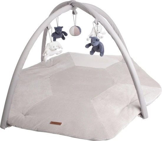 Op dit speelkleed in hexagon vorm ontwikkelt je kindje de zintuigen horen, zien en voelen. Het speelkleed bestaat uit een mat en twee bogen die eenvoudig aan de mat vastklikt. Door het gebruik van de prachtige rib corduroy stof, past dit speelkleed perfect bij de andere accessoires uit de Sense collectie. Naast de kleurcombinatie vintage blue, kiezelgrijs en wit, is de babygym ook in andere kleurcombinaties beschikbaar.