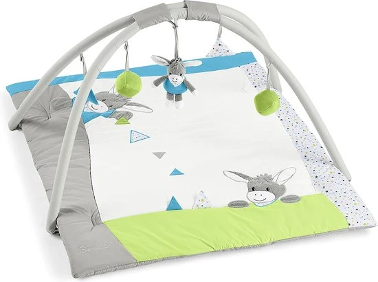 - Soft padded play arch for babies aged 0-18 months with hanging figures and cute donkey Erik motif
