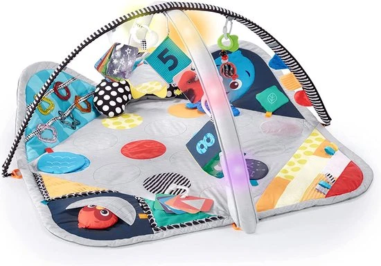 - Soft, colourful lights on the arch dance to classic melodies to promote eye following, neck movement and hearing development.
