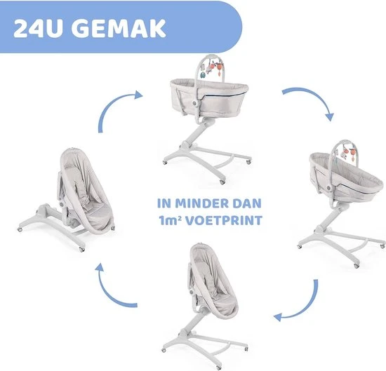 - 4 WIELEN: Dankzij de 4 zwenkwielen met rem kan de Baby Hug 4-in-1 eenvoudig en veilig door het huis worden verplaatst; zodat uw baby probleemloos overal mee naartoe kan