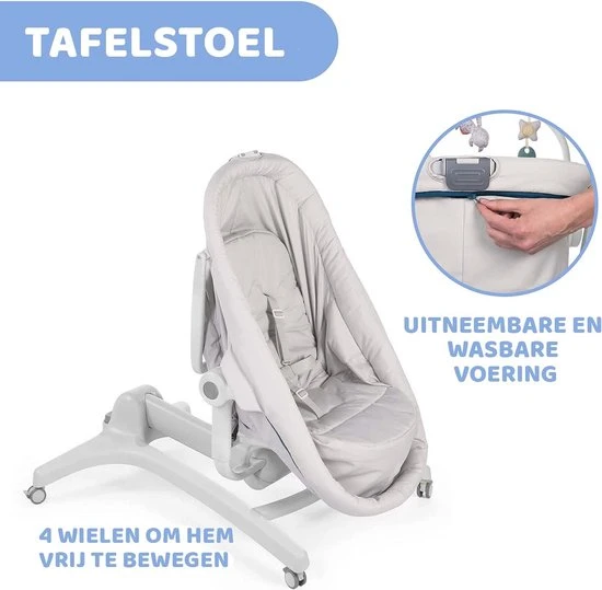 - 4 in 1: Baby Hug is de door Chicco ontworpen 4 in 1 oplossing om uw kind te begeleiden tijdens de groei vanaf de geboorte tot 15 kg (ongeveer 3 jaar); 1 product, 4 functies: baby wieg, verhoogd wipstoeltje, kinderstoel en hoge eetstoel