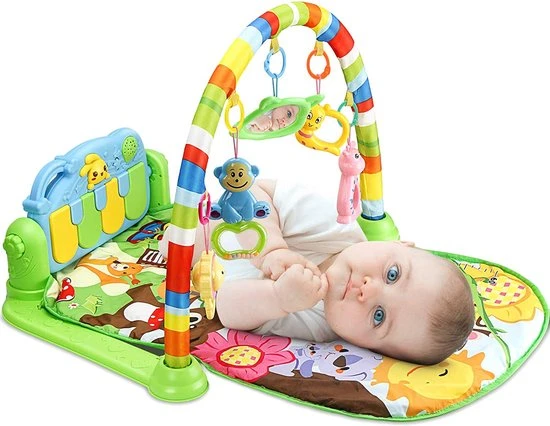 - De piano (uitneembaar) speelt verschillende geluiden en meerdere melodieën. Kan worden gebruikt door de baby liggend en zittend. Indien nodig kan het worden verwijderd en zonder speelkleed worden gebruikt. Batterij niet inbegrepen