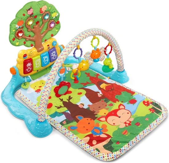 - Kan in drie verschillende posities worden gebruikt: interactieve speeldeken, bij het spelen met de in de boog hangende elementen, om liggend met de piano te spelen en om te zitten met de boom en de uittrekbare piano.