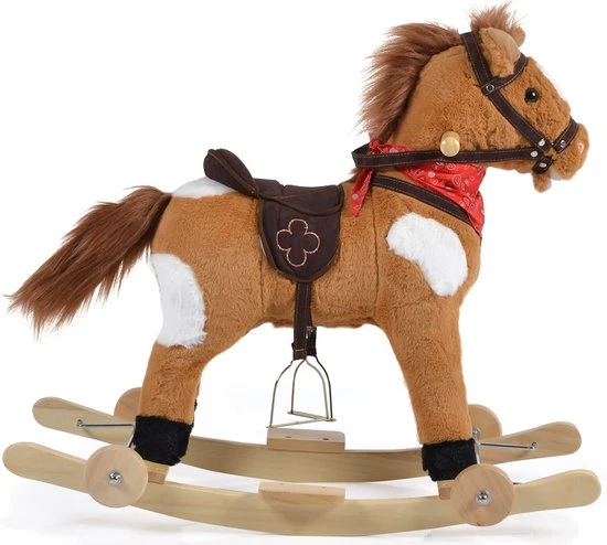 Daarnaast voelt hij heerlijk zacht aan, heeft hij een comfortabel zadel, een stevig houten onderstel en stevige houten handvaten. Ook heeft het hobbelpaardje echte stijgbeugels zodat je kleintje er makkelijk op kan komen. Het onderstel is daarnaast uitgerust met wielen, waardoor je kleine letterlijk rond kan rijden door de kamer. De wielen zijn ook in te klappen, zodat je het als hobbelpaard kan gebruiken.