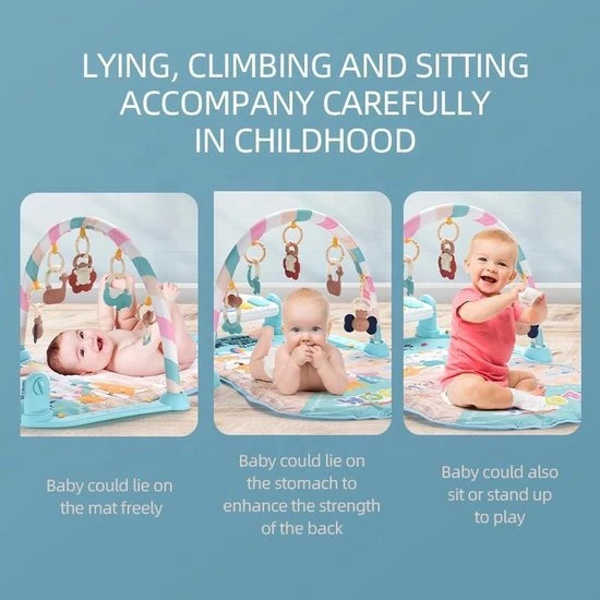 De babygym is niet alleen voor speelplezier, maar zorgt ook voor ontwikkeling van de visuele en auditieve tastzintuigen van de baby. Door kleurrijke activiteiten, muziek, geluidjes en grappige structuren worden namelijk verschillende zintuigen geprikkeld. Ook bevordert het speelgoed de fijn- en grof motorische vaardigheden, probleemoplossende vaardigheden en het denkvermogen.