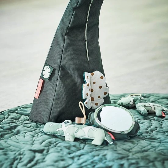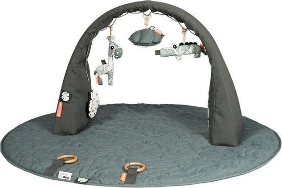 De Done By Deer Tiny Tropics Baby Gym met speelkleed houdt je baby wel even zoet. Aan de boog hangen verschillende speeltjes met activiteiten, zoals een spiegel en de dieren maken verschillende geluiden. Het is te verstellen in breedte en hoogte. De babygym kan in de box, in bed of op het speelkleed neergezet worden. Verder kan het speelkleed ook zonder babygym gebruikt worden.