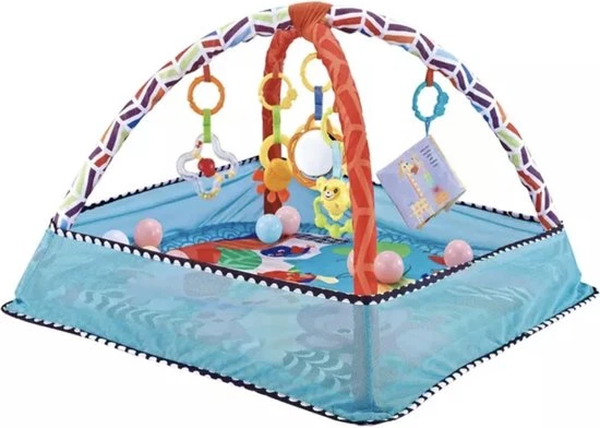 Met de verschillende leuke hangende speeltjes zal je kindje elke keer weer veel plezier hebben. Hierdoor leert je kindje spelenderwijs verschillende geluiden en bewegingen te onderscheiden. Dit speelkleed bevat verschillende labeltjes, bijtspeeltjes, een spiegeltje en knuffeltjes, waardoor je kleintje zich altijd zal vermaken.