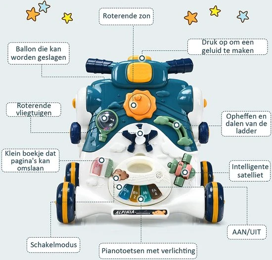 - 【Multifunctioneel spelpaneel】Het paneel bestaat uit zachte verlichting, ingelegd schattig speelgoed en ook muziek. Dit zorgt voor de hand-oog coördinatie en het gevoel voor ritme van de kinderen, terwijl hun cognitie wordt verbeterd. Door de combinatie van entertainment en educatie is deze wandelaar toegewijd aan het verlichten van de geest van de kinderen en de gezonde groei ervan.