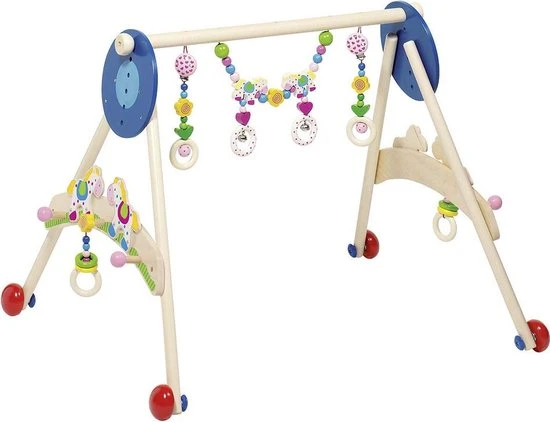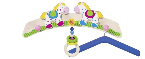 Een stevige en zeer praktische babygym met belletjes, ringen en paardjes om te ontdekken, naar te kijken en mee te spelen.