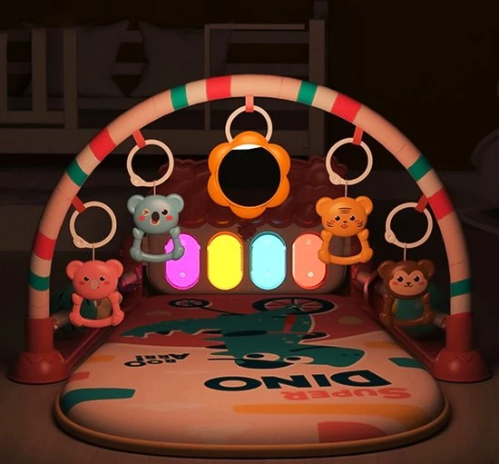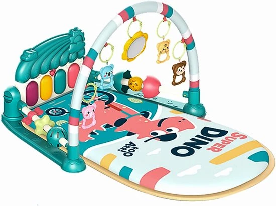 Deze Luxe babygym bevat urenlang speelplezier voor je baby, thuis én onderweg! De draagbare, gewatteerde speelmat is een heerlijke plek om te liggen en te spelen, op de buik te draaien, of zittend te spelen. Om je kleintje bezig te houden bevat het speelkleed een stevige boog met 4 verplaatsbare speeltjes met twee muziekstanden en een spiegeltje. Daarnaast bevat de babygym ook nog een multifunctionele piano voor extra speelplezier. De piano is op verschillende manieren te gebruik. Door de speciale voetenfunctie kan je baby al liggend de piano bedienen en muziek maken. Zodra je baby een zittend houden kan hebben, is het ook mogelijk om de piano met de hand te bedienen. Verder kan de piano verschillende geluidjes maken en muziekjes spelen met een tijdsduur van maximaal 10 minuten. De babygym is het speelgoed waar spelplezier en ontwikkeling samen komen. Zo leveren de diverse kleurrijke activiteiten, muziek, geluidjes en grappige structuren een bijdrage aan het ontwikkelen van de visuele en auditieve tastzintuigen van je baby. De speelmat is erg comfortabel en veilig ingesteld. Ook is het speelkleed makkelijk te verschonen en kan zonder enige problemen de wasmachine in.