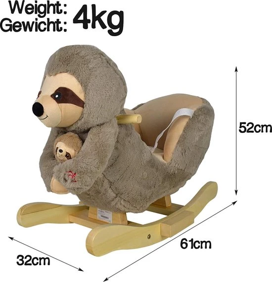 Ons kleine schommelspeelgoed is de perfecte metgezel voor je kind dat dol is op dieren en hun reis naar de wereld van creatief spel en verbeeldingskracht. Voor uren speelplezier. Voor de veiligheid van je lieve kleintje kun je achterover leunen en ontspannen. Het hobbeldier is voorzien van een verstelbare veiligheidsgordel en heeft twee praktische handvatten om evenwicht te bewaren, evenals voetsteunen die voor stabiliteit zorgen. Een driezijdige gezellige zithoek en daarbovenop een muziekfunctie – meer heeft uw kind niet nodig om te beginnen met spelen. Technische informatie: Luiaard Afmetingen: Totaal (L / B / H): ca. 61/32/52cm Zitgedeelte (L/B/H): ca. 34/18/24 cm Zithoogte (H): ca. 22 cm Gewicht: ca. 4 kg Belangrijke kenmerken: Muziek functie Linkerbeen: welterusten deuntje max. draagvermogen: ca. 30 kg Benodigde batterijen: 2 x AA (niet inbegrepen) Materiaal: Populierenhout Ijzeren frame Polyester / pluche hoes Polyester veiligheidsgordels en vulling Leveringsomvang: 1 x hobbeldier SKTR03, luiaard voor zelfmontage, incl. 1 x instructie in (EN / FR / DE / IT) Opmerking: Decoratie is niet bij de levering inbegrepen. De kleuren kunnen afwijken van de afbeelding. Levering op eilanden is niet mogelijk. Batterijen zijn niet inbegrepen.