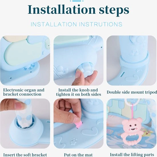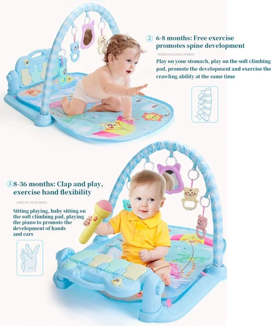 Babygym heeft 4 verschillende spelstanden: liggend, liggend, zittend en schoppend. Deze babymat is geschikt voor baby’s van 0 tot 36 maanden oud en kan met uw kind meegroeien. Als u op zoek bent naar het perfecte speelgoed voor pasgeborenen, dan is deze uitstekende “Grow up with me” spelmat de juiste keuze. Met de aanschaf van een schop- en pianogym kunt u geld en ruimte besparen, waardoor u de ontwikkeling van uw baby kunt bevorderen en het leuk kunt maken!