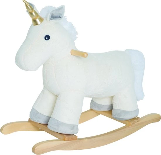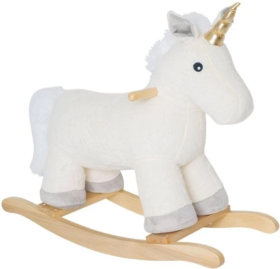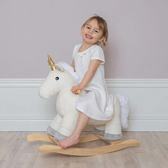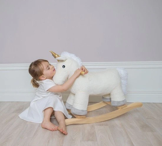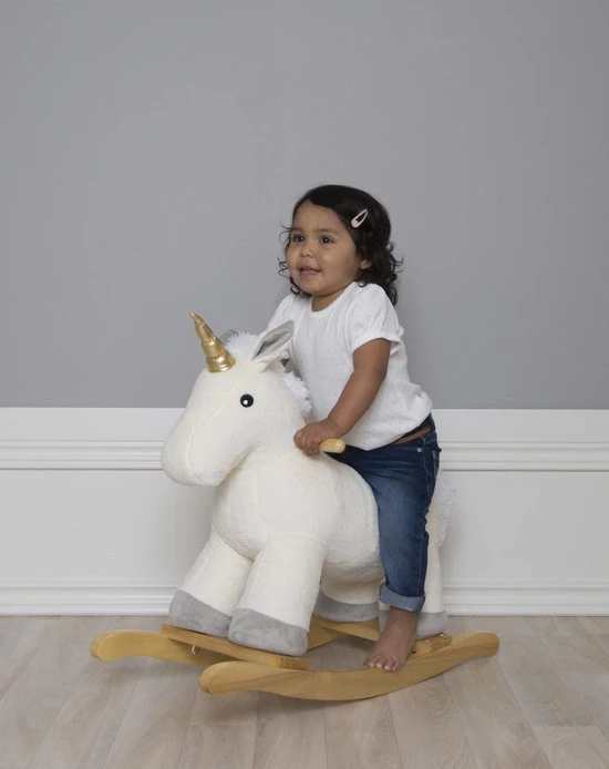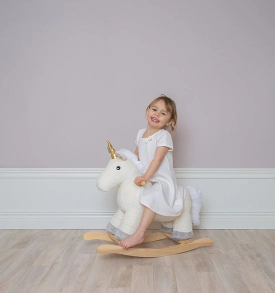 UNICORNWow! Dit schommelpaard in de vorm van een unicorn is het nieuwe vriendinnetje van jouw kleintje! De unicorn is zacht en comfortabel om op te zitten en heeft twee handvatten. Een echte eye-catcher voor in de woonkamer of kinderkamer. Gegarandeerd urenlang speelplezier op de schommel of geef hem een knuffel wanneer je dat nodig hebt. SPECIFICATIESKleur: naturel, grijs, wit, goudMateriaal: pluche, houtInhoud: 1 stukAfmetingen: 67cm (B) x 27cm (D) x 60cm (H)Geschikt vanaf 18 maanden.