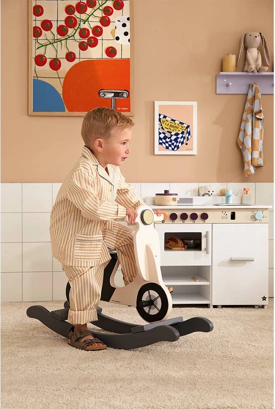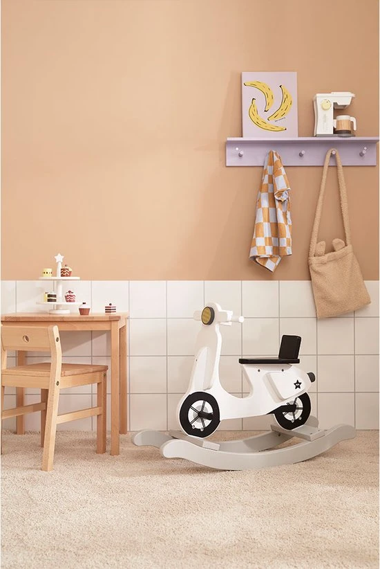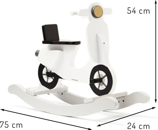 Maak kennis met deze witte hobbelscooter. Deze stoere scooter is gemaakt van stevige houtsoorten. Geschikt voor kinderen vanaf 18 maanden. Afmetingen 75 x 24 x 54 cm.