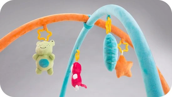 Dankzij de mogelijkheid om speelgoed op te hangen, kun je de uitrusting van de mat eenvoudig aanpassen aan de ontwikkelingsfase en voorkeuren van je baby.