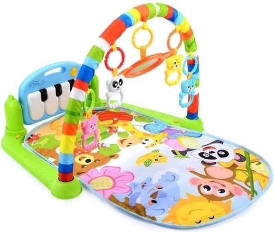 Met deze vrolijke, interactieve baby gym met piano zal jouw kleine zich uren vermaken. Doordat het speelkleed heerlijk zacht is ligt je kleine comfortabel. De hangertjes en speeltjes van de baby gym zorgt ervoor dat de zintuigen en motoriek van jouw kleine wordt gestimuleerd en ontwikkeld. Al liggend op de rug, kan je kleine heerlijk tegen de pianotoetsen aan trappen om muziek te maken onder begeleiding van vrolijke lichteffecten. De hangers en piano zijn afneembaar en hierdoor eventueel mee te nemen voor onderweg of naar bed!