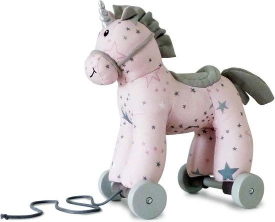 Wat zal je kindje heerlijk spelen met dit super leuke trekpaardje van Little Bird Told Me. Celeste het trekpaardje is een schattige eenhoorn in vrolijke roze en grijze vintage kleuren! Dit mooie trekpaardje zal je kamer helemaal compleet maken dankzij haar vrolijke uitstraling. Celeste heeft houten afneembare wieltjes. De wieltjes zijn te bevestigen en los te halen met klittenband.