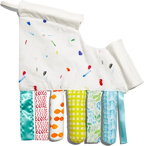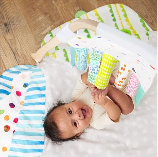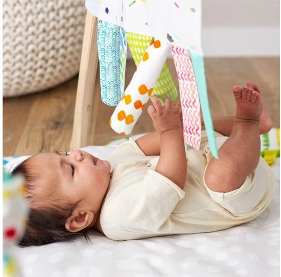 Bevestig de Sensorisch Speelgoed Linten van Lovevery veilig aan de Play Gym en laat je baby nog meer ontdekken: grijpen, reiken, verstoppen en vinden, texturen en nieuwe sensaties.