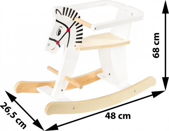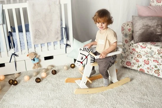 Ontwikkelt motorische coördinatie, ondersteunt oefeningen en verbetert het evenwichtsgevoel. De kleur van het paard zal zeker nieuwsgierigheid wekken en de aandacht van het kind trekken, wat aanmoedigt om te spelen.