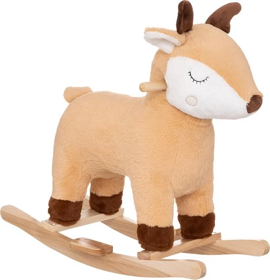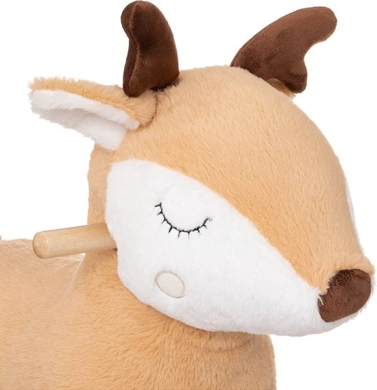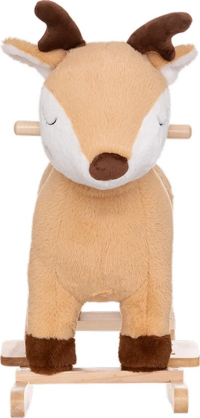 Dit pluche hobbeldier maakt elk kindje blij! De stevige houten basis en de houten handvaten zorgen voor de veiligheid tijdens het schommelen. Geschikt voor kinderen vanaf 18 maanden. Afmetingen: 64x33x55 cm.