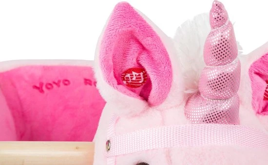 De reis naar Adventure-Land kan beginnen! Jonge eenhoornliefhebbers kunnen hier echt van genieten! Deze rockende eenhoorn heeft een ergonomische stoel uitgerust met een knuffelzachte vacht. Om dit speciale soort schommeldier in beweging te krijgen, moet de jonge ruiter eenvoudig de houten handvatten vasthouden en beginnen met heen en weer te schommelen. Dit traint vooral de motoriek van kinderen en hun evenwichtsgevoel. En wanneer je op het oor van de eenhoorn drukt, wordt er een realistisch paardengehinnik geluid gemaakt, wat heel leuk is voor de kleintjes. Wie wil er naar het land van de regenbogen komen?