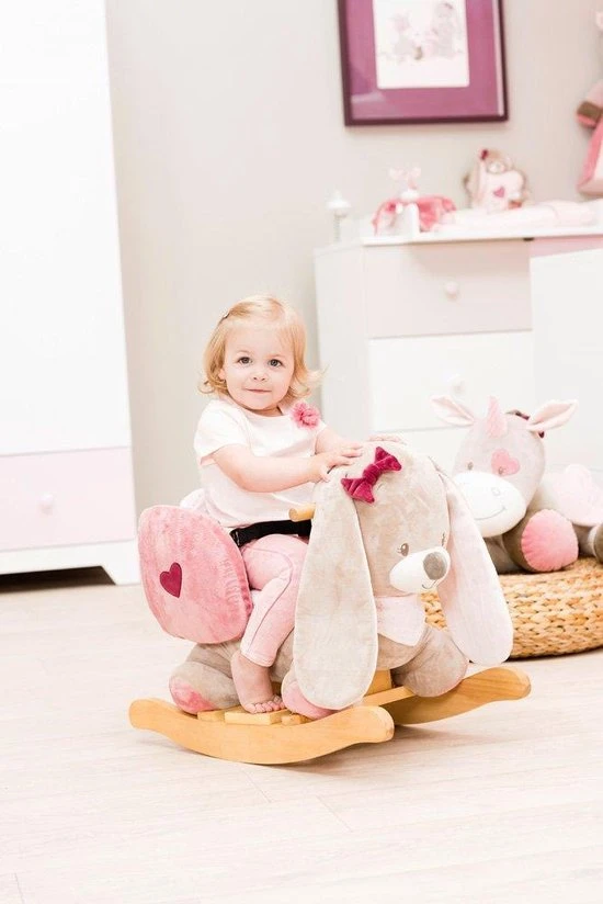 Dit heerlijk zachte hobbelpaard konijn Nina van Nattou staat garant voor uren speelplezier. Het konijn Nina schommelpaard met een houten onderstel zit net zo comfortabel als een luxe stoel.