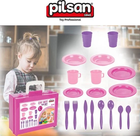Theesets, een van de speeltjes waar meisjes graag mee spelen als ze jong zijn, zijn een van de speeltjes die nooit uit de mode raken en nooit oud worden… de Pilsan speelgoed thee set, dat de harten van meisjes op het eerste gezicht verovert met zijn roze tas, vergemakkelijkt het dragen en helpt het optillen in ongebruikte tijden. Het speelgoed, dat ook een grote ruimte creëert voor kinderen om te socialiseren met hun vrienden, helpt ook kinderen hun verbeelding te ontwikkelen. De speelgoedthee set, dat bestaat uit 28 stukken en wordt geleverd met een handtas met Vork-Lepel-Mes set, theebeker, dessertplaat, waterbeker, kan gemakkelijk worden gedragen waar u wilt dankzij zijn tas! Met de Pilsan speelgoed theeset dat geschikt is voor het gebruik van kinderen van 3 jaar en ouder, kunnen kinderen een vreugdevolle tijd hebben, met vrienden of alleen. Speeltijd is nu nog leuker met de speelgoedthee set, wat een leuke cadeau voor kinderen! U kunt uw kinderen veilig speelgoed geven dat geproduceerd is uit grondstoffen dat geen kankerverwekkende stoffen bevat en geschikt zijn voor de gezondheid van kinderen.