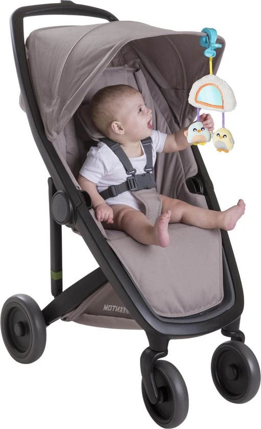 * Bevat 4 afneembare hangspeeltjes, onder andere rammelaar, bijtringen en een spiegeltje. Neem ze allemaal mee voor onderweg en link/hang ze aan je autostoeltje of kinderwagen