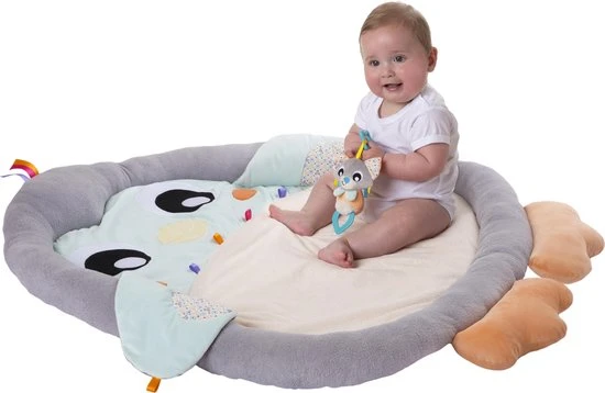 Wie wilt niet een warme knuffel van deze snoezige pinguïn gym ontvangen? Hij is heerlijk zacht en zal een veilige en rustgevende speelruimte creëren voor je baby. De pinguïn vleugels/zijflappen kunnen baby’s buik zachtjes bedekken om ze een geborgen gevoel van warmte en veiligheid te geven wanneer ze heerlijk op de mat liggen te spelen. De 2 speelbogen met 4 afneembare speeltjes en 1 spiegeltje moedigen je baby aan om te reiken en te grijpen en stimuleren zelfreflectie. Zet de buikligkussen in om baby’s nekspieren te trainen wanneer je kindje op zijn/haar buik ligt. De speelkleed is machine wasbaar. Kortom, een geweldige baby speelkleed waar je samen thuis en onderweg veel plezier aan zult beleven.