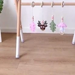Merkloos BIJTSPEELGOED- RINGKETTING 100% Organische Houten Baby Grijp-bijtspeelgoed 3 M + WIT