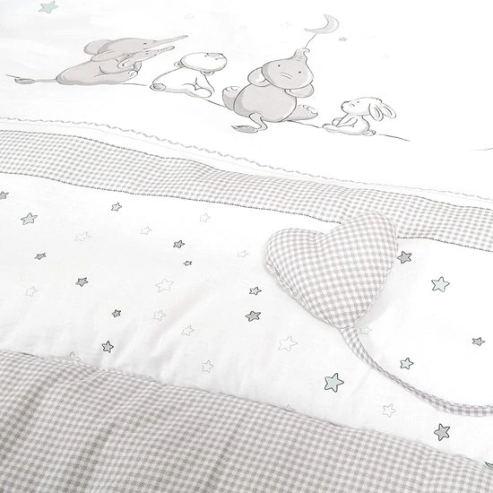 - De gevoerde speelmat met een stoffen maan en hart om te spelen houdt dankzij de zachte vliesvulling de kou op de grond