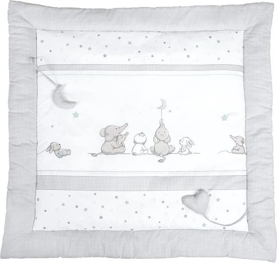 Het Magic Stars speelkleed van Roba is heerlijk zacht en speciaal voor de eerste gymnastiekpogingen van jouw baby. Het gewatteerde speelkussen biedt een beschermde laag tussen de koude vloer en jouw kindje. Aan het kleed zitten figuurtjes om mee te spelen. Alle materialen die in de roba speel- en kruipdeken worden gebruikt, zijn getest op schadelijke stoffen, gecertificeerd en regelmatig getest. Het kleed is wasbaar en geschikt voor in de droger.