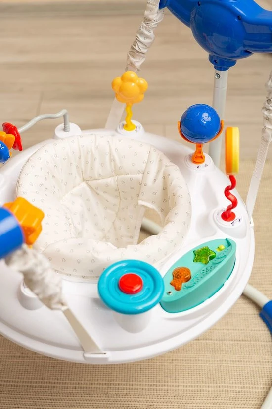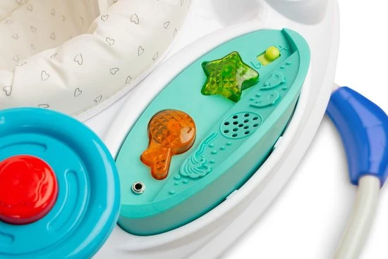 De SMOL-jumper zorgt voor veel plezier en plezier voor kleine gebruikers. Dankzij de verscheidenheid aan aantrekkelijke kleuren zal de kleine graag veel tijd besteden aan spelen en ontwikkelen. Een comfortabele stoel die 360 ° draait stelt hem in staat om comfortabel bij al het speelgoed te komen. Door het speciale ontwerp kun je op en neer springen, speciale haken maken het gemakkelijk om de hoogte van de springer aan te passen. Het interactieve voorpaneel vergroot het plezier met verlichte knoppen en geluiden.