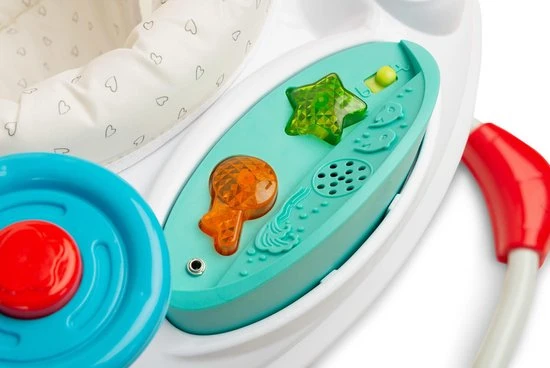 De SMOL-jumper zorgt voor veel plezier en plezier voor kleine gebruikers. Dankzij de verscheidenheid aan aantrekkelijke kleuren zal de kleine graag veel tijd besteden aan spelen en ontwikkelen. Een comfortabele stoel die 360 ° draait stelt hem in staat om comfortabel bij al het speelgoed te komen. Door het speciale ontwerp kun je op en neer springen, speciale haken maken het gemakkelijk om de hoogte van de springer aan te passen. Het interactieve voorpaneel vergroot het plezier met verlichte knoppen en geluiden .