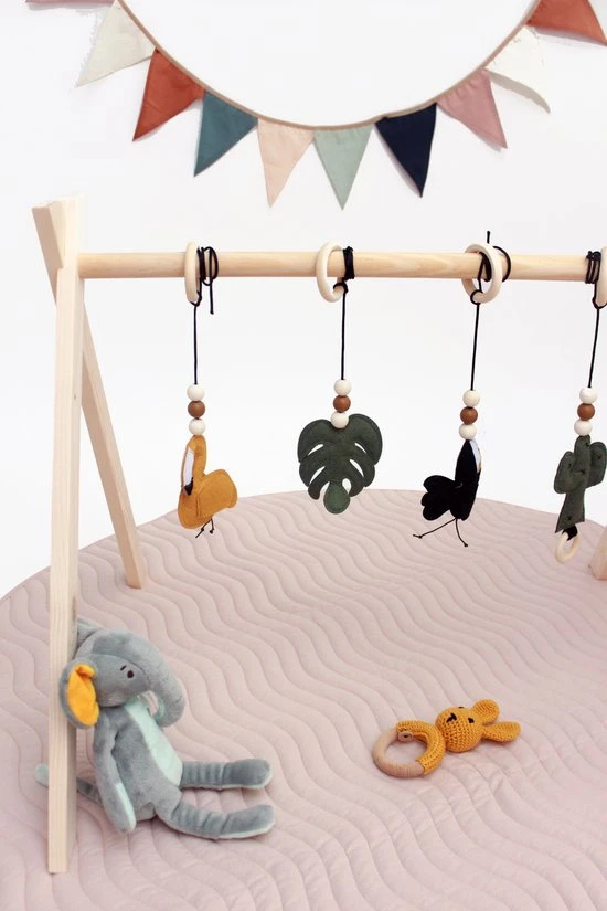 Met deze babygym kan jouw baby kijken, voelen en horen, op deze manier worden de zintuigen beter ontwikkeld. Jouw baby kan zich heerlijk vermaken met deze speelboog en het heeft ook nog eens positief invloed op de zintuigen!