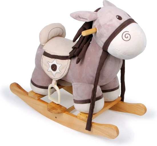 Houten Hobbelpaard Sheriff is lief en voorzien van twee zadeltassen en krakende oren (bij aanraking).