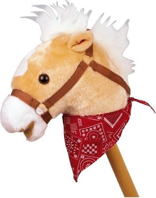 Een leuk oud stuk speelgoed, dat iedereen kent. Ook oma en opa reden vroeger zo rond. Hier komen sport en spel bij elkaar. Pak de stok bij de twee handvatten vast, doe de stok tussen de benen en je kunt van start! Het paard draagt een rood met witte halsdoek. Door op een van de oren te drukken begint het paard te hinniken en galoppeer geluiden te maken.