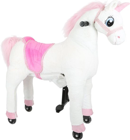 Deze kleine witte eenhoorn lijkt op een echt paard en kan door handige rijdbewegingen van jouw kind in huis en tuin bereden worden. De eenhoorn kan naar links en rechts worden gestuurd en heeft een aangenaam zacht vel. Het textiel van de eenhoorn kan er helemaal af gehaald worden zodat je deze kunt uitwassen.