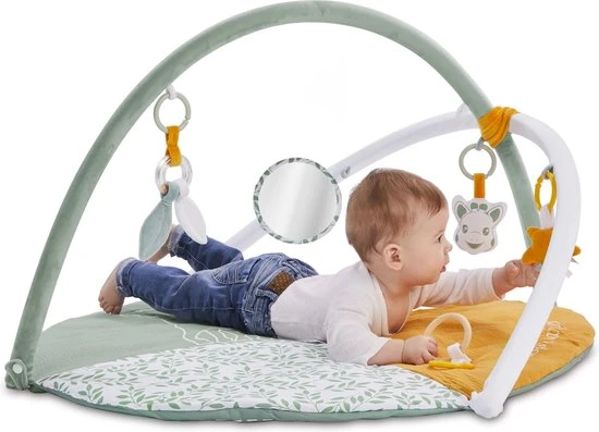 De 2 in hoogte verstelbare bogen maken het mogelijk om de positie van de activiteiten aan te passen zodat de baby wordt aangemoedigd om zijn hoofd te draaien, zijn spieren te versterken en zijn motorische vaardigheden te ontwikkelen. De evolutieve mat zorgt ervoor dat de baby veel plezier beleeft, eerst op zijn rug, vervolgens op zijn buik en ten slotte kan genieten van de comfortabele mat wanneer de baby zit.