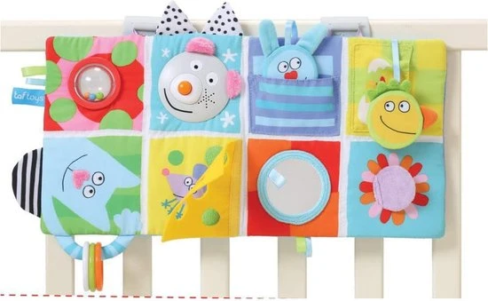 Dit vrolijke activiteitencentrum is geschikt voor de box. Het activiteitencentrum is op verschillende manieren te gebruiken. Afhankelijk van de leeftijd van je kindje. gemaakt van katoen. Wat een welkome aanvulling is in de levensfase waar het ontdekken een steeds belangrijkere rol speelt, ook in de zithouding. Het speelboek kan gemakkelijk worden meegenomen. Het activiteitencentrum heeft verschillende speelmogelijkheden: vrolijke afbeeldingen, verschillende hangende figuren, ratelgeluiden, kiekeboe spelletjes, plastic ringen, knisper geluidjes en een spiegel en een muis. Ook ideaal voor het oefenen van buikligging. Het activiteiten centrum is te bevestigen dmv de twee meegeleverde clips. Het geluid en licht van de muis werkt op 6x aaa batterijen, deze worden niet meegeleverd.