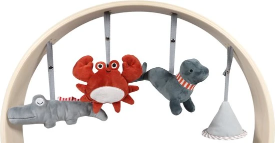 Je kindje zal veel plezier beleven met deze mooie babygym van Tryco. De babygym is gemaakt van stevig hout en heeft een boog-vorm.De gym bevat vier hangers, namelijk zachte pluche speelfiguurtjes. Dit zal je kindje uitnodigen ernaar te grijpen en helpen met de fijne motoriek.