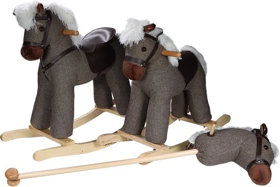Het hobbelpaardje is gemaakt van een mooie ruiten stof met mooie afwerking, heeft een halster én een zadeltje om op te zitten. De mooie manen en het staartje maken het paardje levensecht.Ook maakt het paardje echte galoppeer geluiden en kun je andere cowboy geluiden aanzetten waardoor je kleintje zal denken dat hij of zij op een echt paardje rondrijdt!