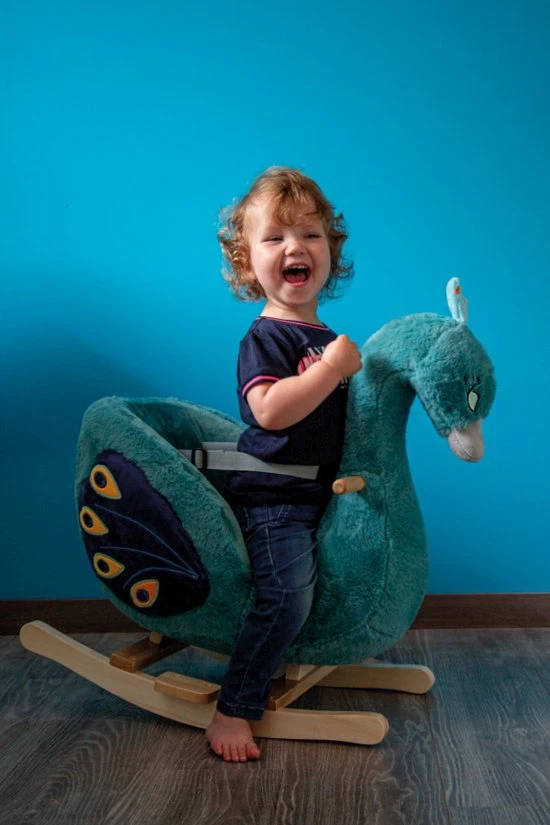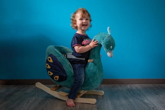Wanneer je op het hoofdje van deze hobbelpauw drukt zal zij een echt dierengeluidje maken. Het voelt net alsof het een échte pauw is! Daarnaast is Pixie mooi vormgegeven en heeft zij zelfs pauwenveren en prachtige oogjes waardoor ze een echte toevoeging voor de babykamer zal zijn.