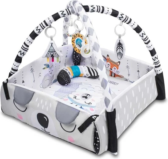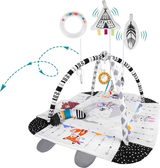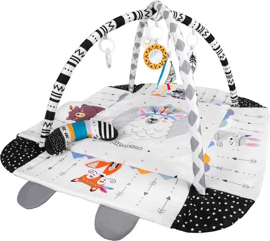 Spelen op deze mat betekent tegelijkertijd het koninkrijk van vriendelijke dieren leren kennen! Deze zachte en extra grote babygym garandeert uren goed en veilig plezier. Je kleintje ontwikkelt zo zijn of haar fantasie en dat maakt deze mat een bijzondere speelervaring.